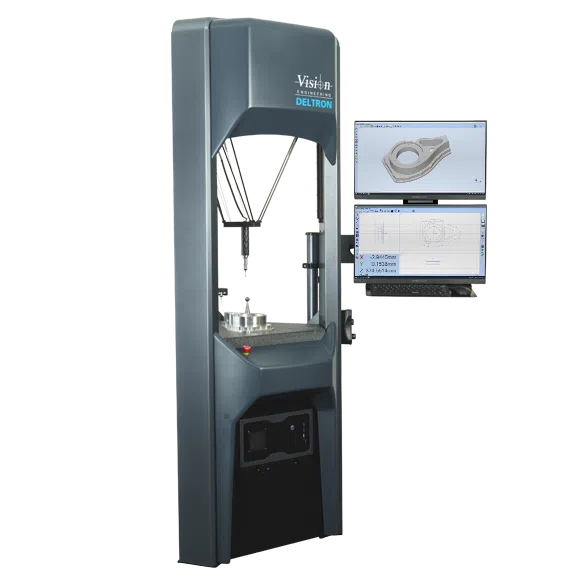 For those with limited shop floor space, Deltron is a robust and accurate CNC coordinate measuring machine, combined with compact footprint, but with substantial construction to ensure stability. This unique combination is only made possible by its delta mechanism incorporating carbon fibre rod construction, and well developed software control delivering high levels of measurement accuracy and repeatability.
